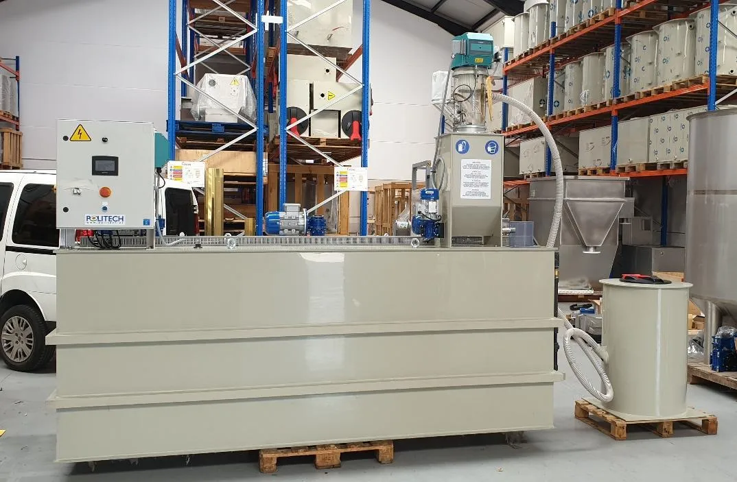 Los sistemas POLICHARGE están formados por un cargador neumático, una manguera provista de una caña de aspiración y un depósito pulmón de diseño especial del cual aspiran el polielectrolito en polvo.